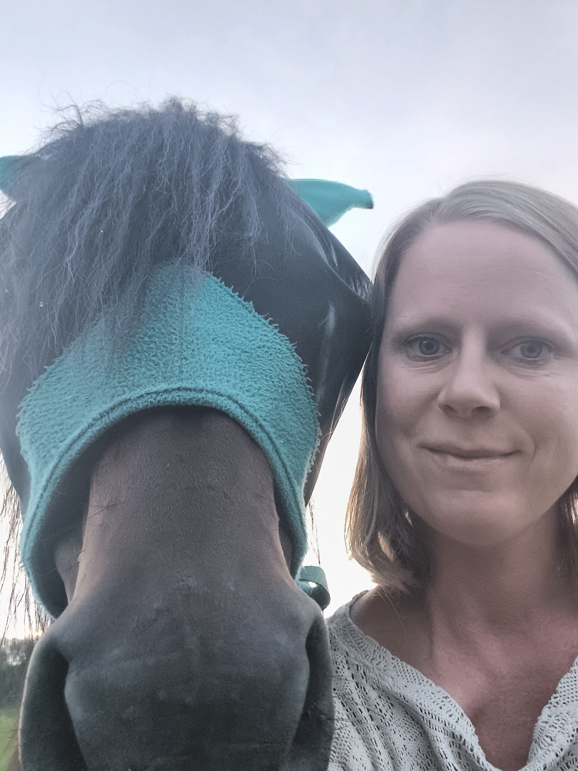 Ich bin Miriam Schäfer, Sozialarbeiterin, Reittherapeutin und mobile Reitlehrerin (seit Mai 2025 in Ausbildung als Delightful Riding Coach bei OsteoDressage).